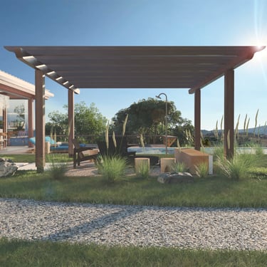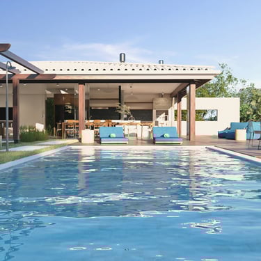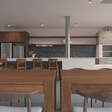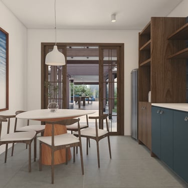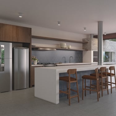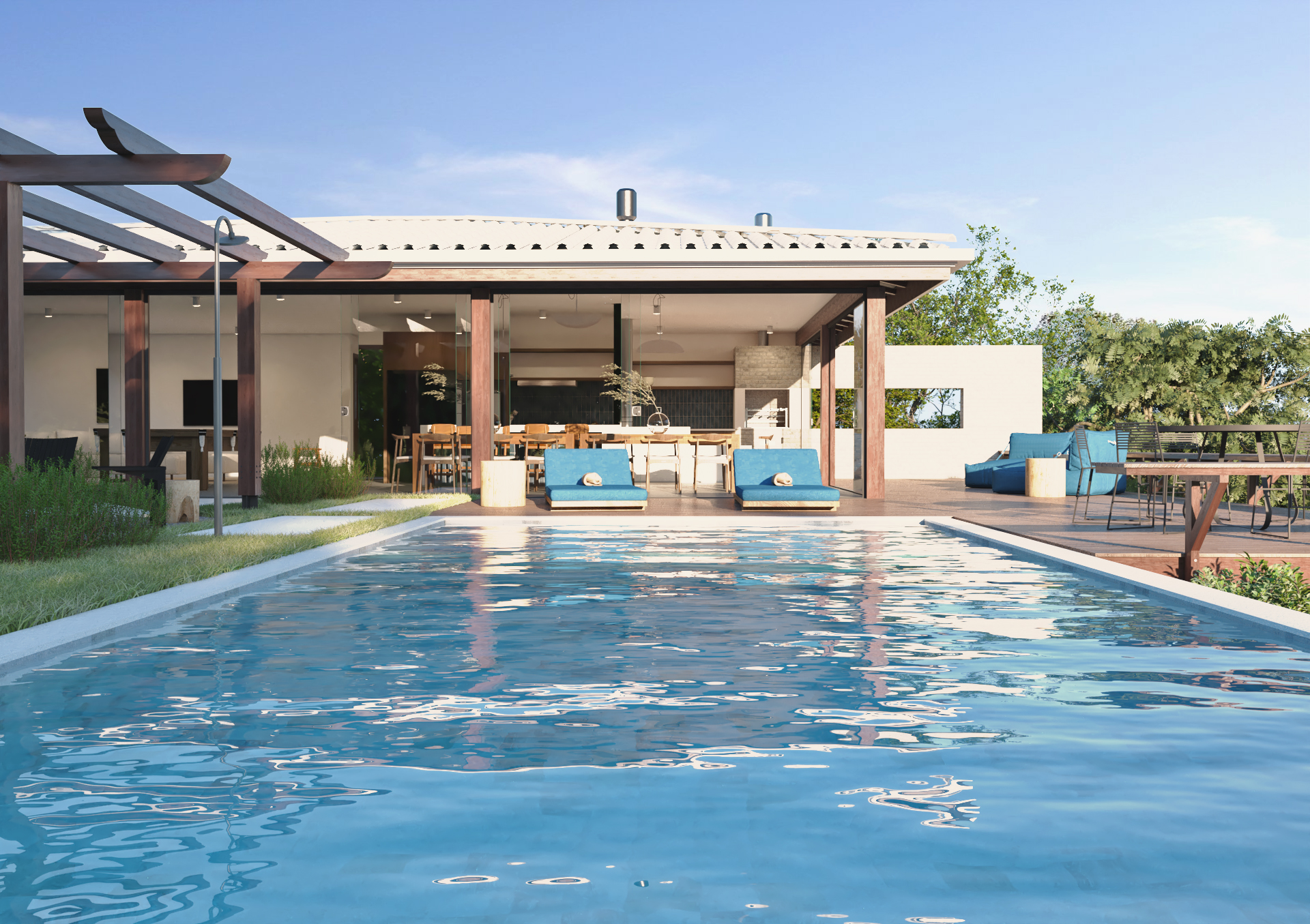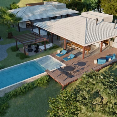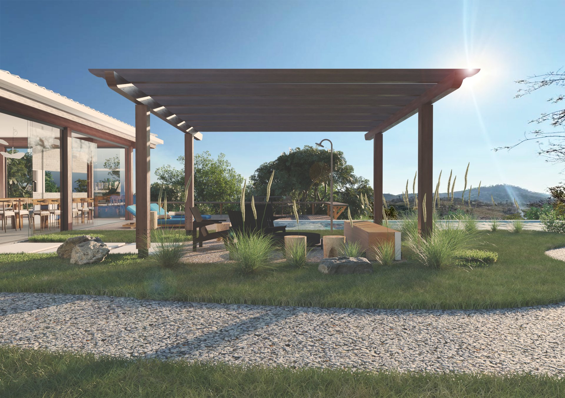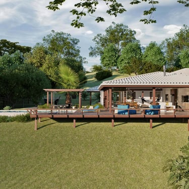 O projeto foi implantado para equilibrar convivência e privacidade em um sítio pensado para receber família e amigos. A residência principal abriga a rotina dos moradores com conforto e privacidade, enquanto um bloco independente reúne o espaço gourmet.