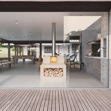 Essa separação cria liberdade de uso para quem visita, sem interferir no cotidiano de quem vive ali, garantindo que cada ambiente funcione no seu próprio ritmo, em harmonia.