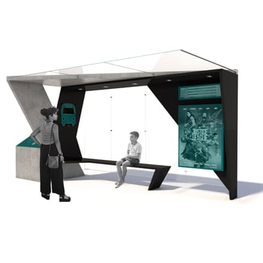A composição emprega materiais contrastantes — o concreto como elemento sólido e estático, o aço como símbolo da leveza e movimento —, traduzindo visualmente a dualidade proposta. A estética adotada busca refletir os códigos da contemporaneidade, fazendo do abrigo um marco funcional e simbólico de chegada, pausa e conexão.