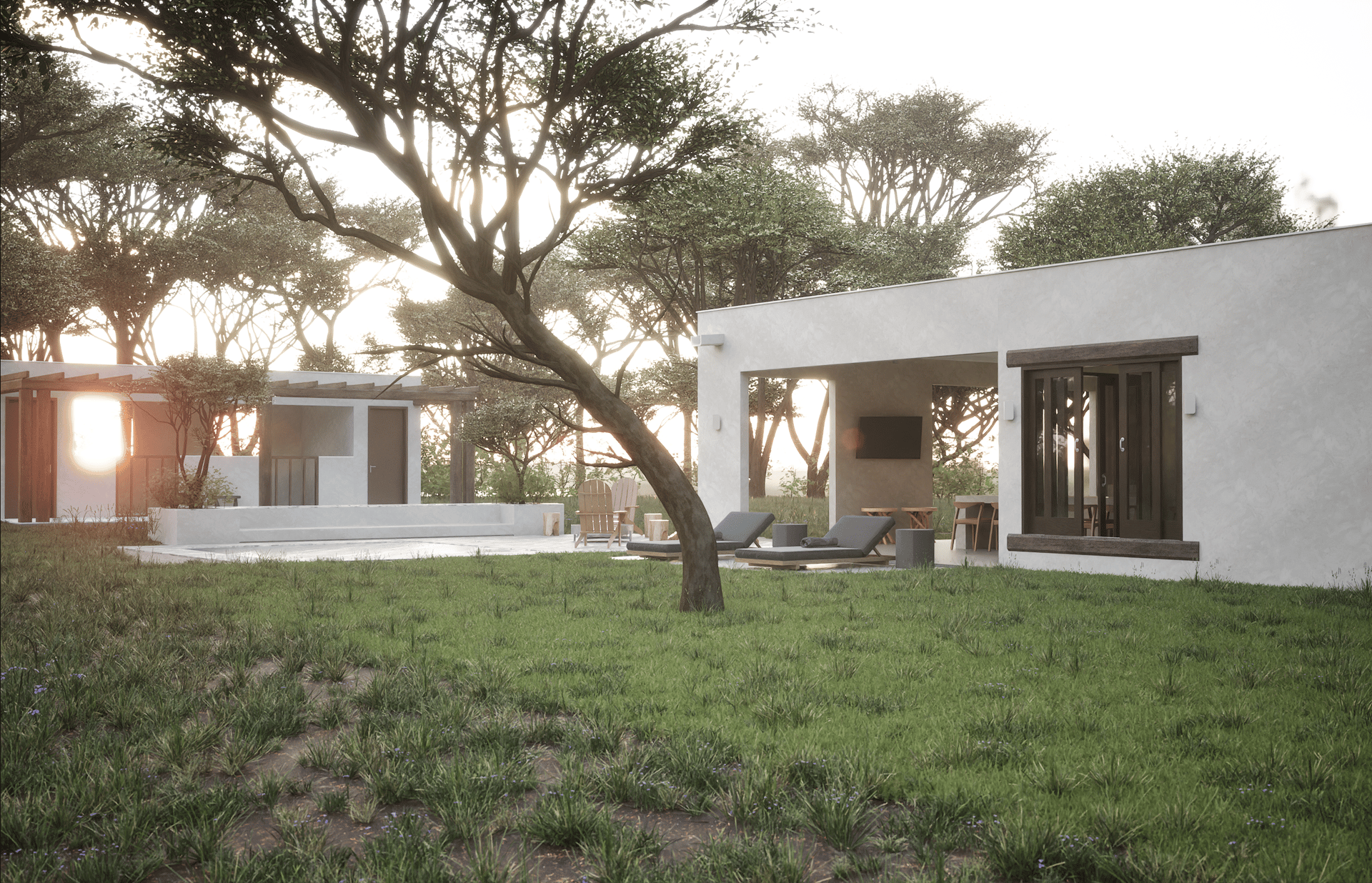 O projeto nasce da existência das árvores que já habitavam o terreno. Elas definiram não apenas a implantação, mas toda a lógica da casa, a partir de sua posição, o programa se organiza em dois setores, íntimo e social — conectados por um ponto de transição suave.