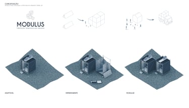 O projeto (MODULUS) é estabelecido na intenção de frisar o processo de elaboração de um conjunto modular edificável que promova a inclusão e participação mútua dos vulneráveis, no reestabelecimento de seu habitar, implementado na fase seguinte à que já se tem a estabilização das famílias e seu encaminhamento aos abrigos de emergência (MARINHO 2013).